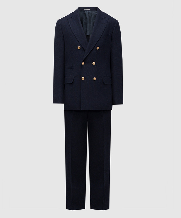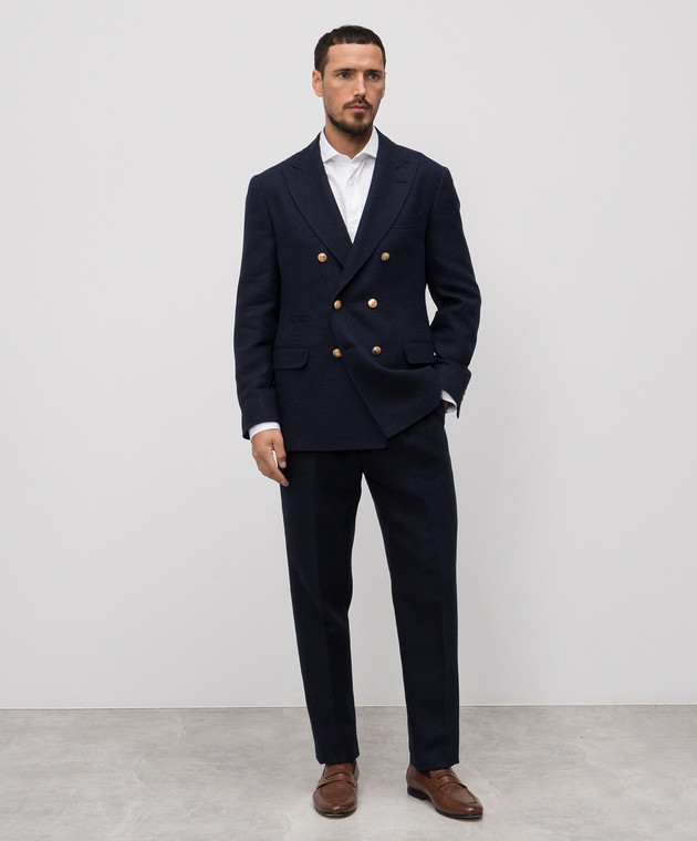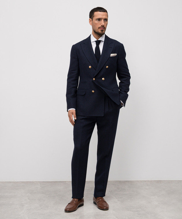 Синий костюм с леном, шелком и шерстью