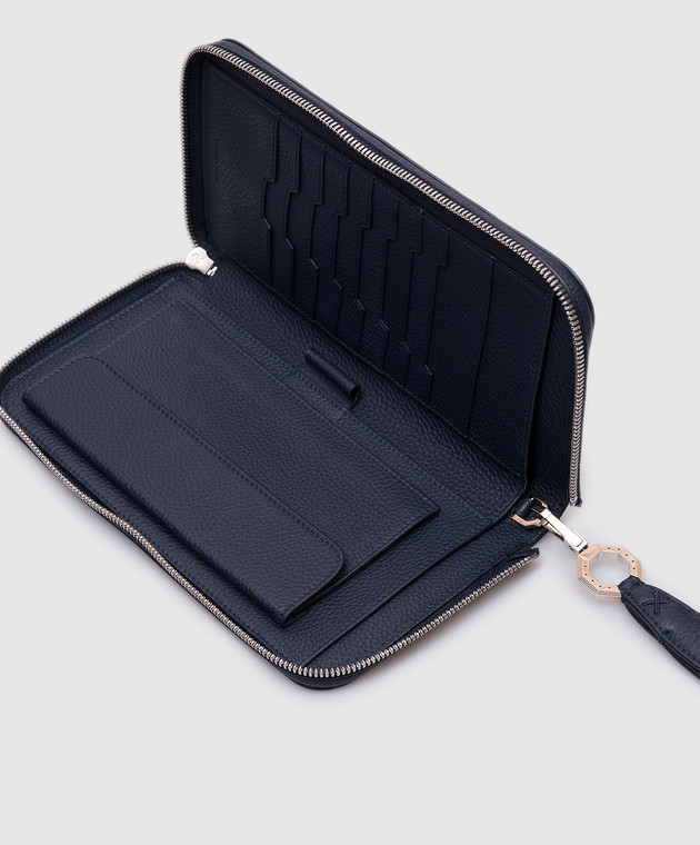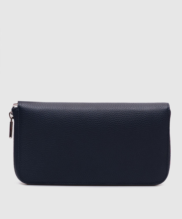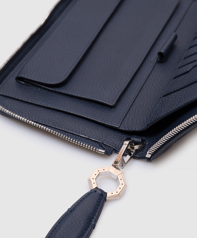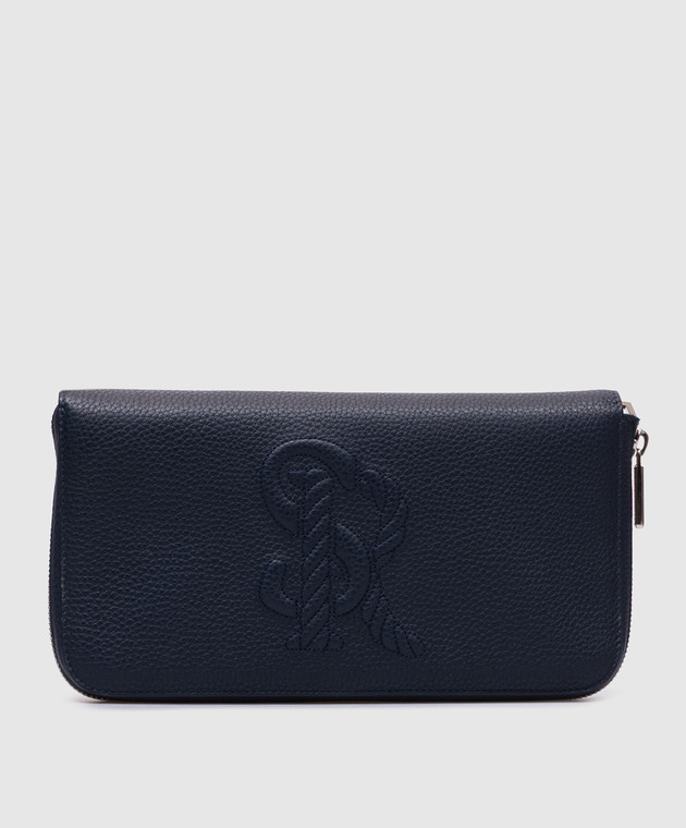 Синий кожаный кошелек с фактурной монограммой логотипа