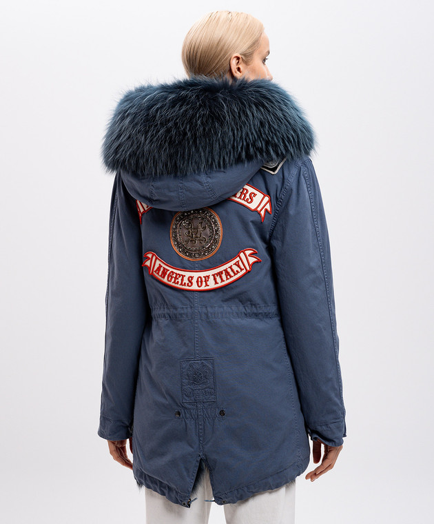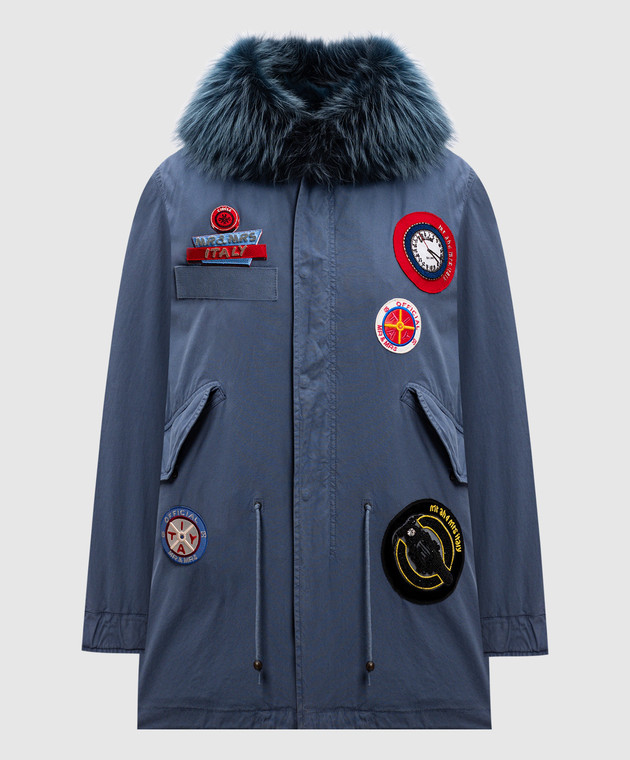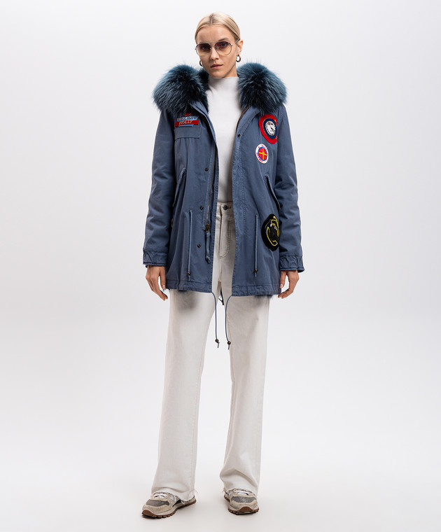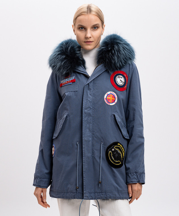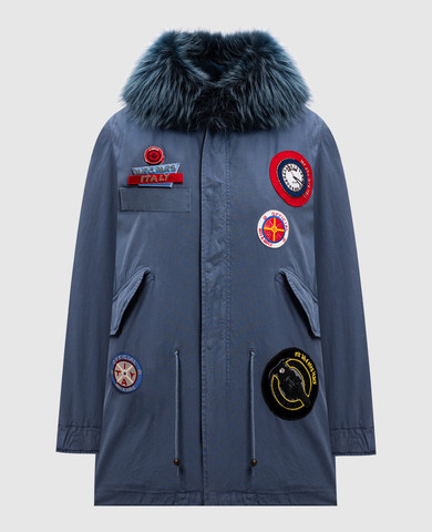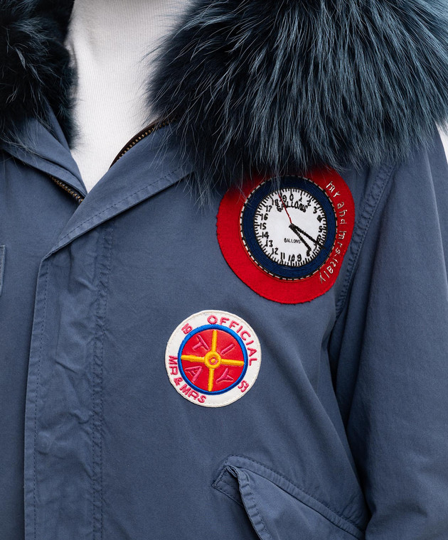 Синий парк на меху с аппликациями