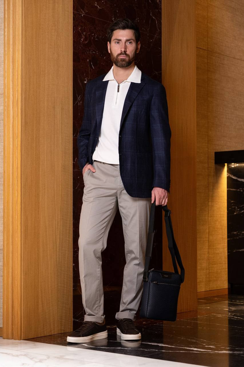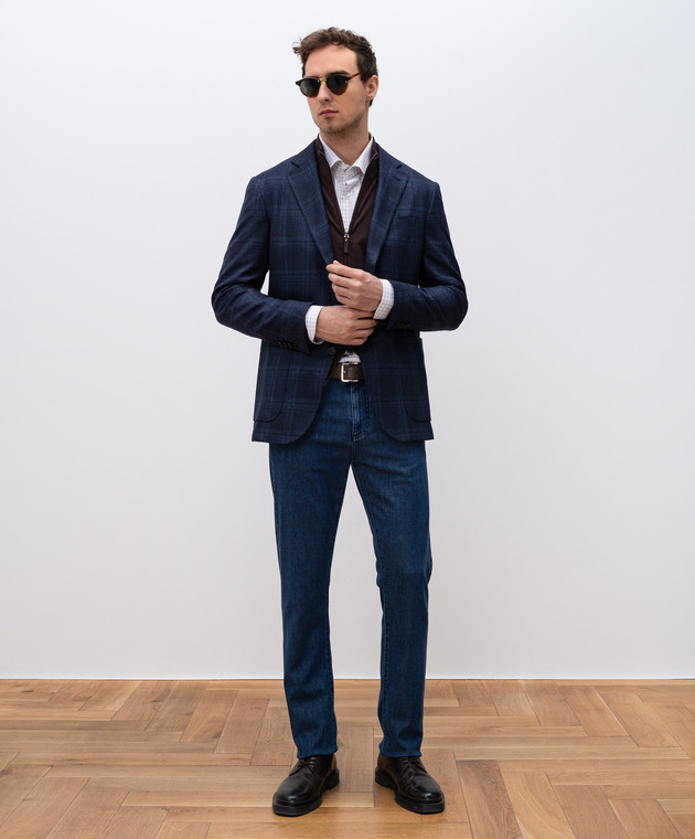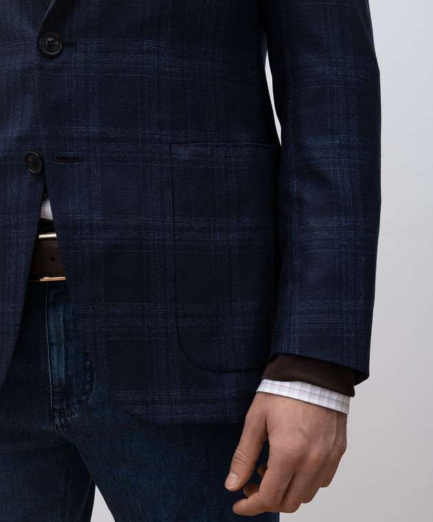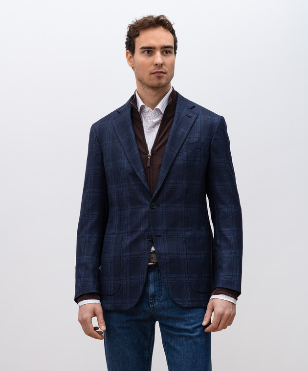 Синий пиджак из шелка и кашемира в клетку