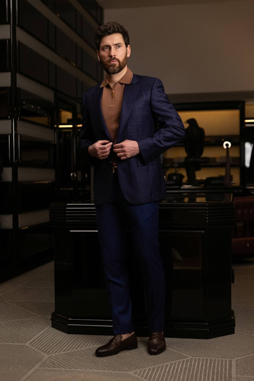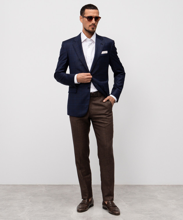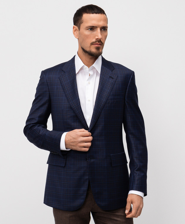 Синий пиджак из шерсти в клетку
