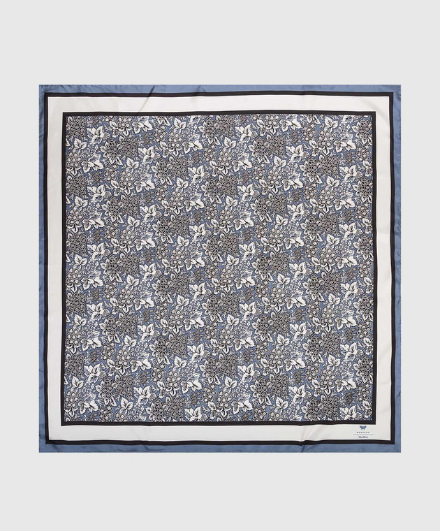 Синий платок из шелка в цветочный принт