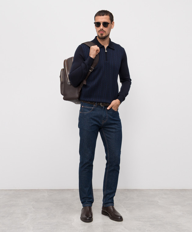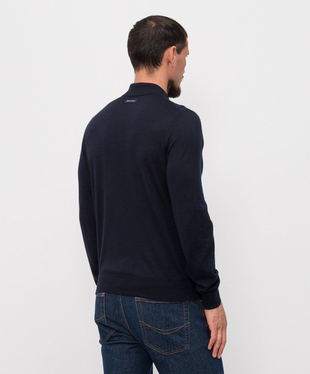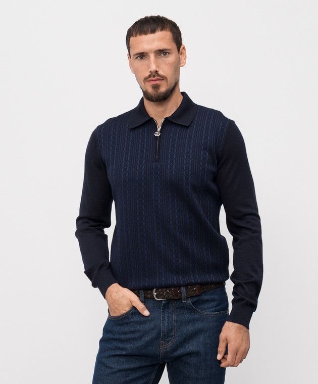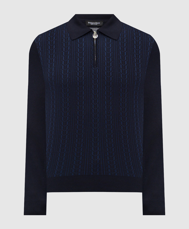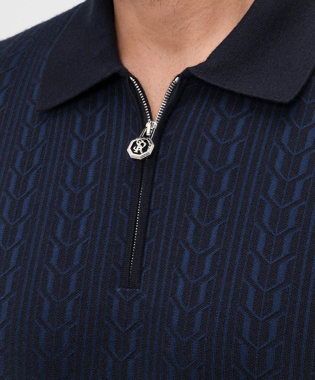 Синий поло с кашемиром и шелком в узор