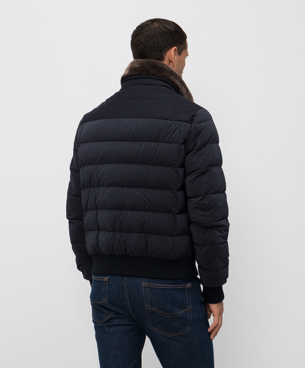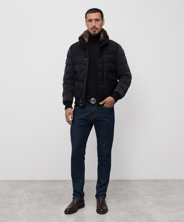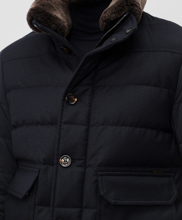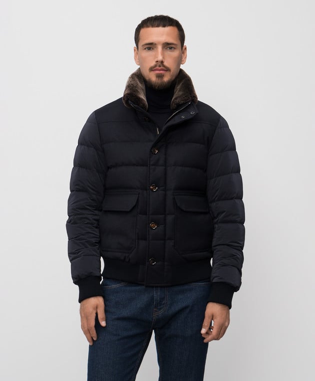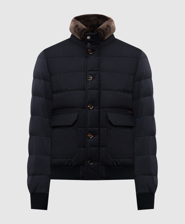 Синий пуховик FANTONI из шерсти и кашемира с овчиной