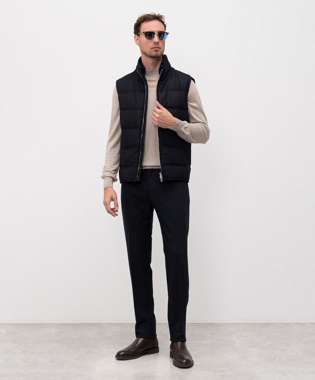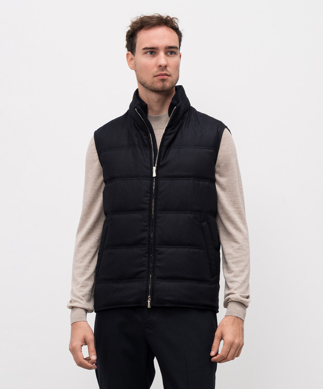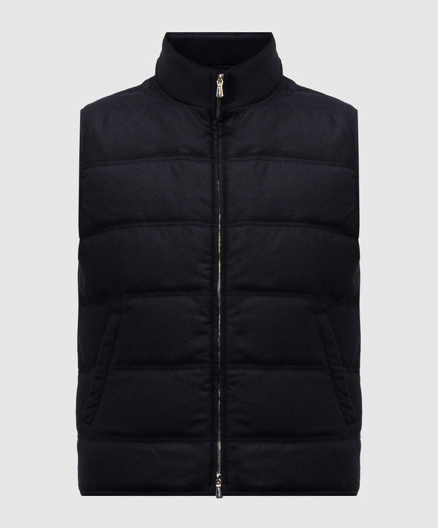Синий пуховой стеганный жилет из шерсти и кашемира