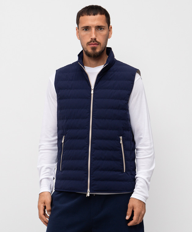 Синий стеганый пуховой жилет