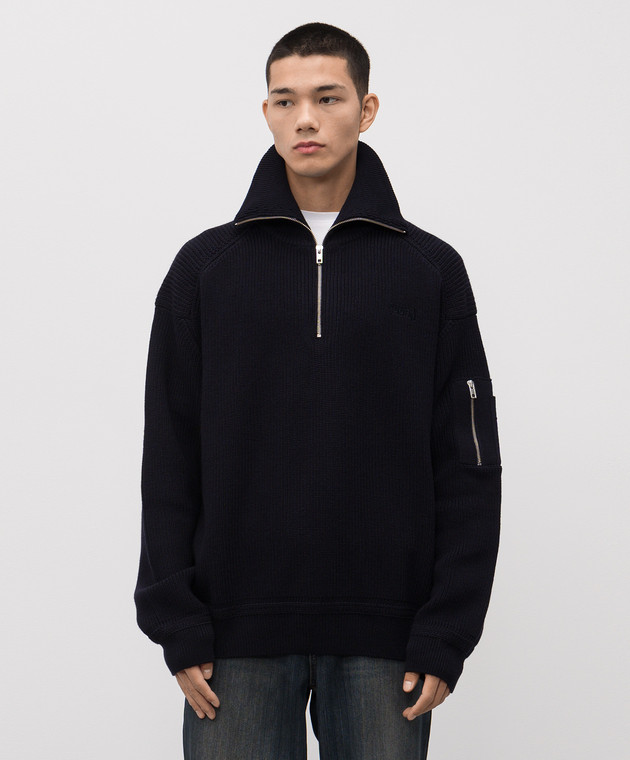 Синий свитер с шерстью с логотипом