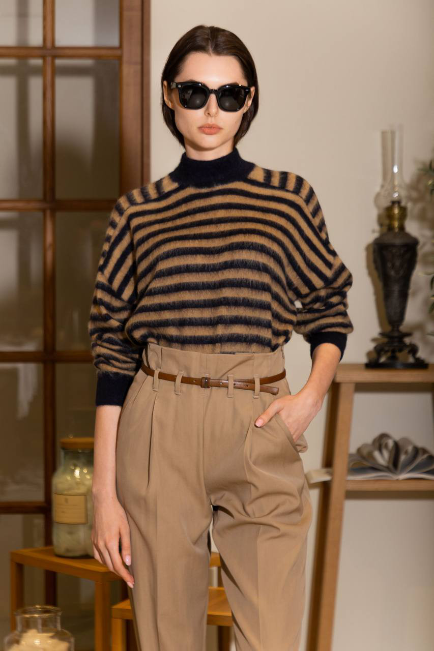 Синий свитер в полоску с цепочкой мониль