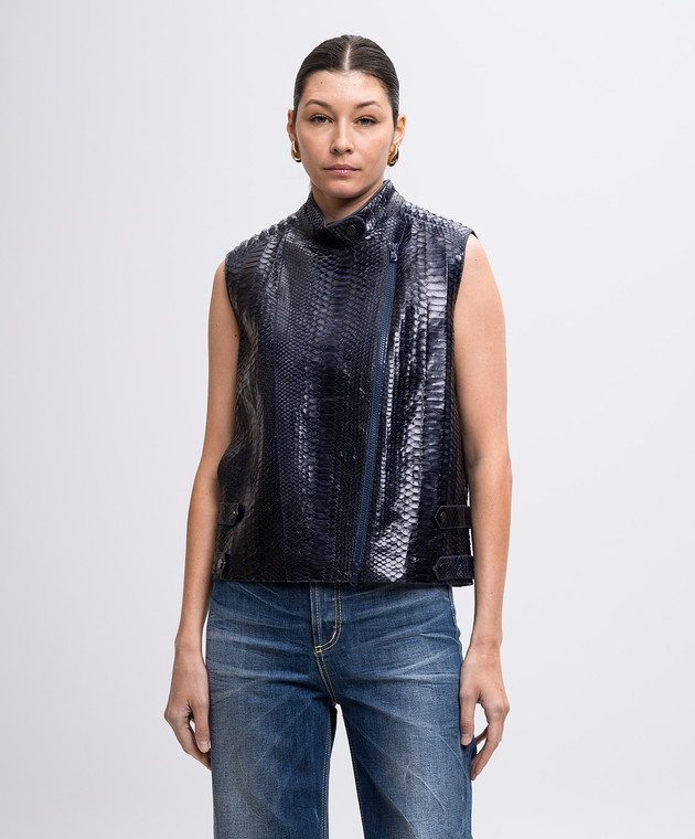 Синий жилет из кожи питона