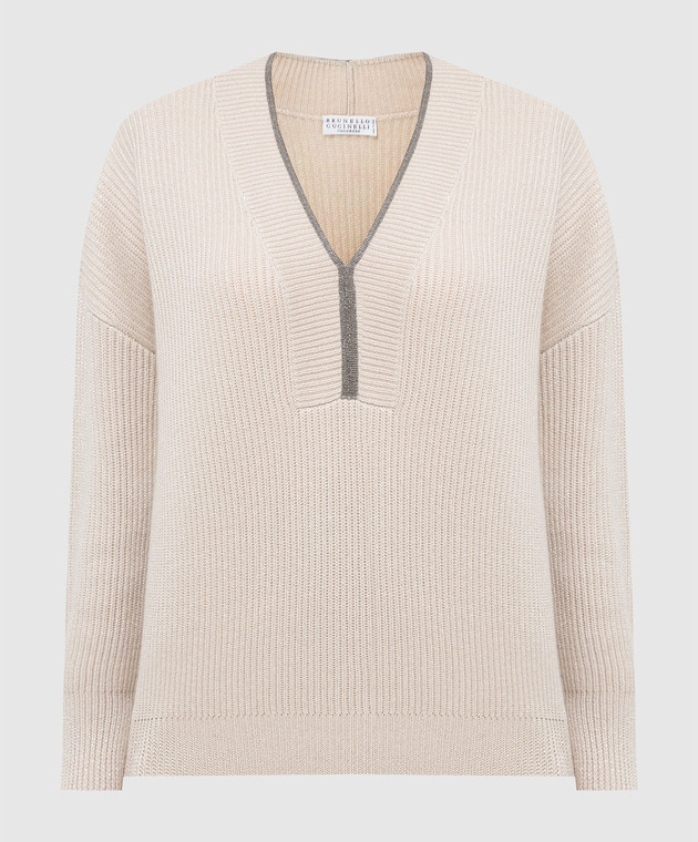 Светло-бежевый пуловер из кашемира с люрексом и цепочками
