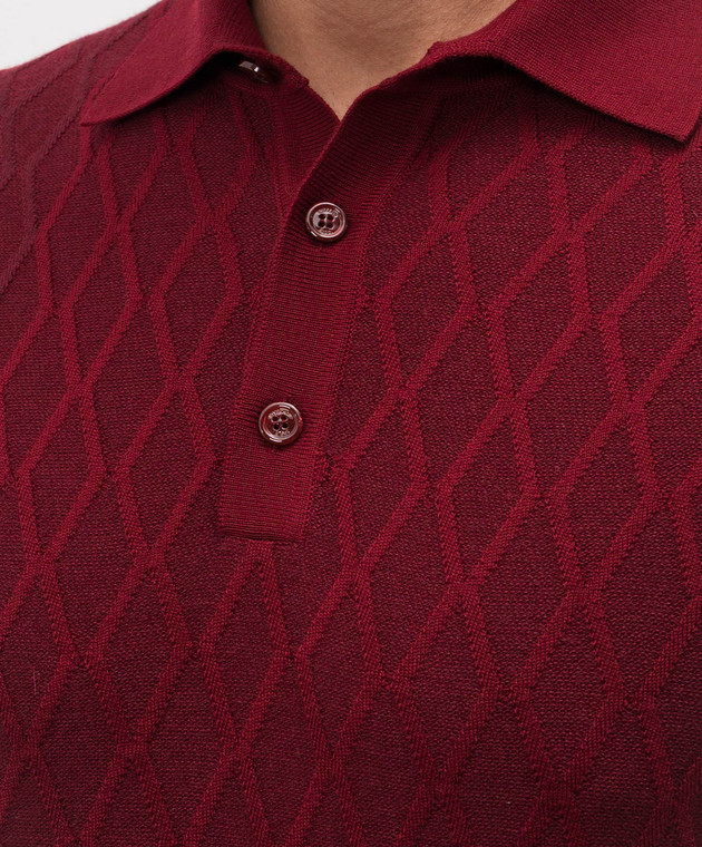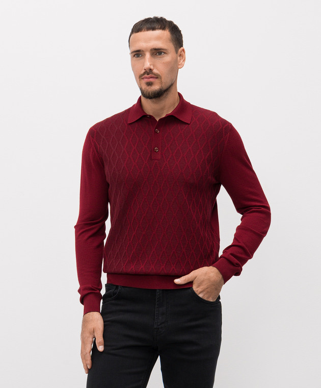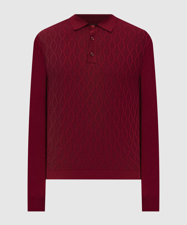 Бордовое поло из шерсти и кашемира в геометрический узор