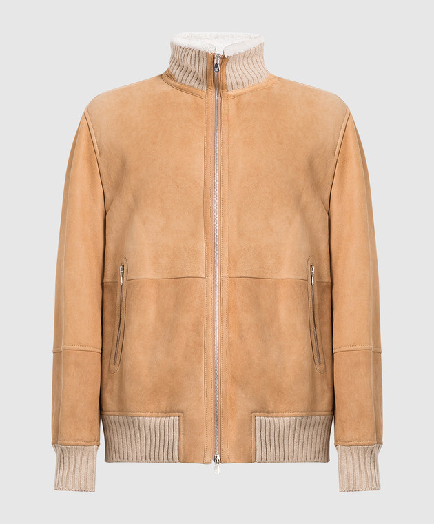 Темно-бежевая кожаная дубленка