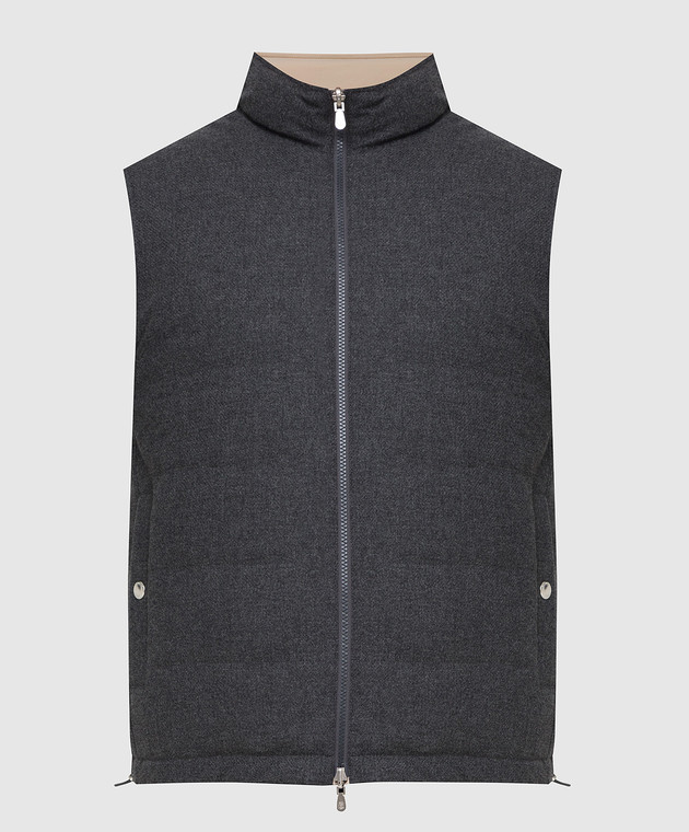 Темно-серый двусторонний пуховый жилет из шерсти, шелка и кашемира