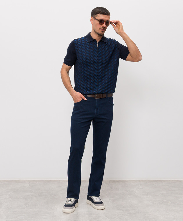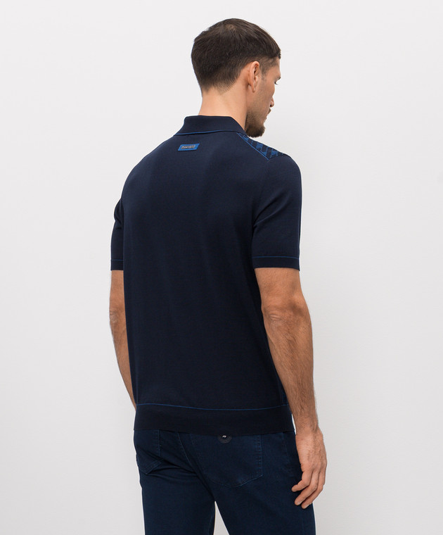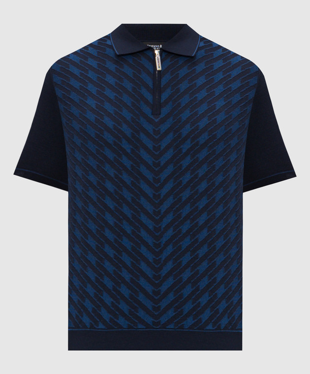Темно-синее поло с шелком в геометрический узор