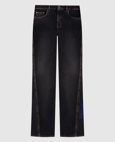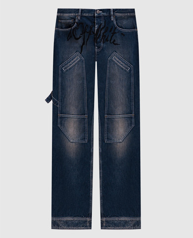 Темно-синие джинсы с эффектом потертости