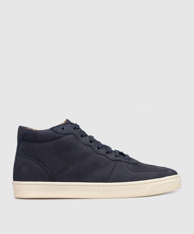 Темно-синие кожаные сникеры на меху с тиснением логотипа