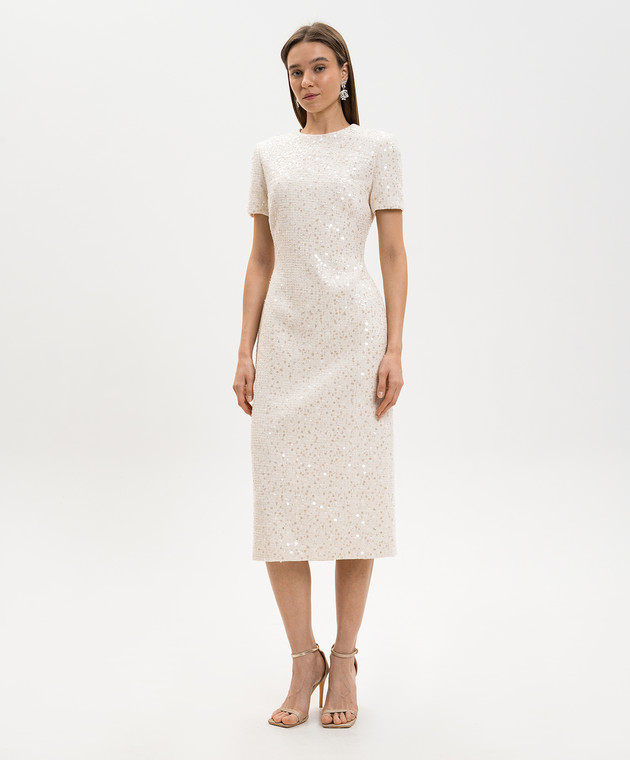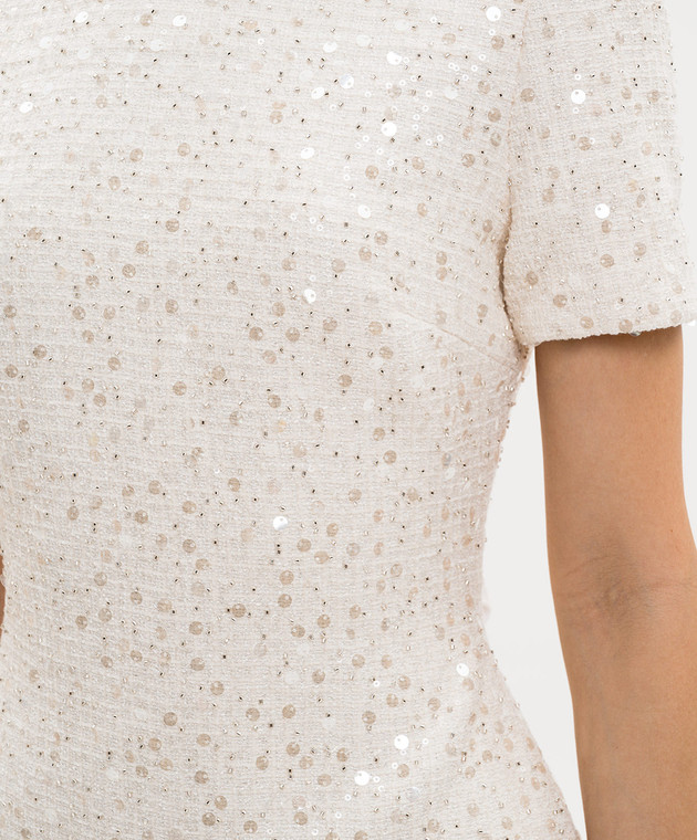 Твидовое платье-футляр цвета айвори в пайетке