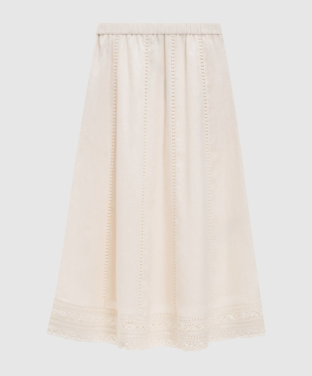 Юбка цвета айвори GERGO из льна с вышивкой