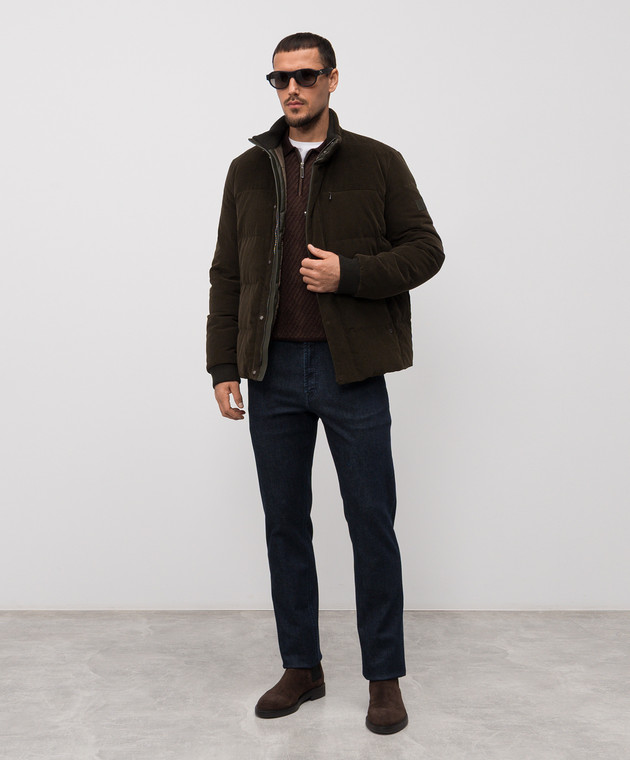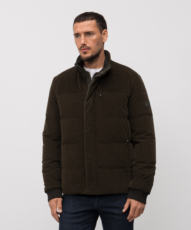 Вельветовая пуховая куртка цвета хаки
