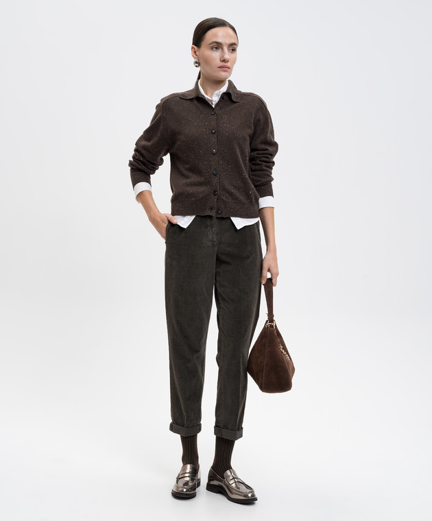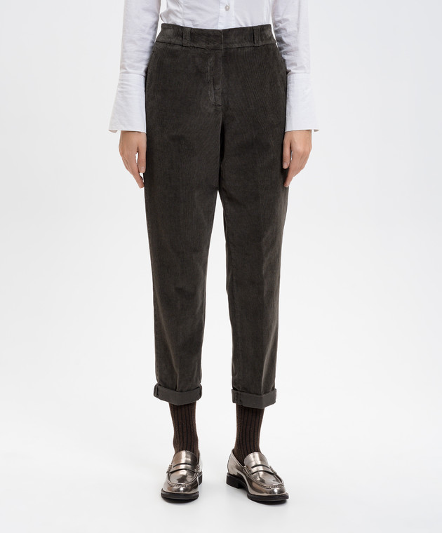 Вельветовые брюки цвета хаки с отворотами