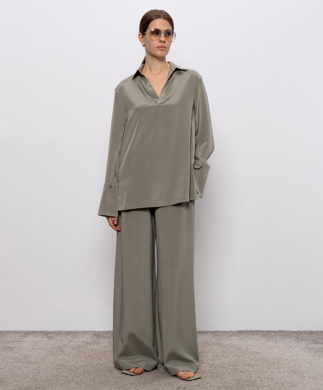 - Декор разрезы в боковых швах, разрезы на пуговицах на рукавах, бантовая складка