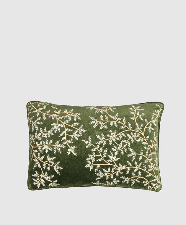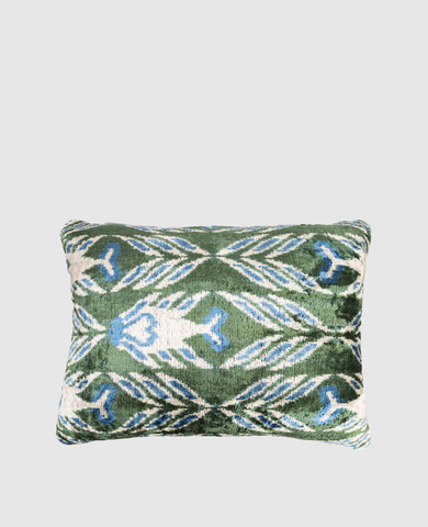 Зеленая декоративная бархатная подушка с шелком