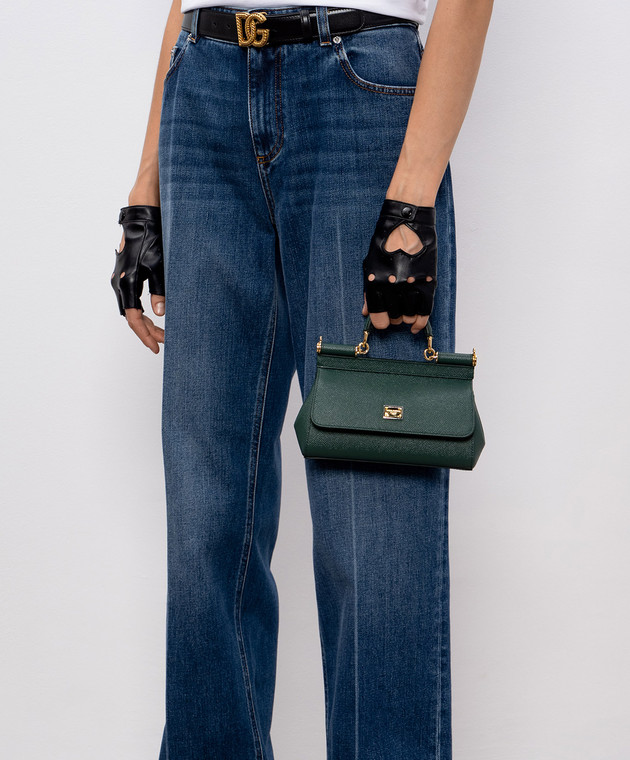 Зеленая кожаная сумка-мини Sicily с логотипом