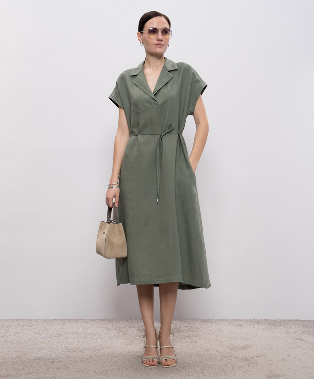 Зеленое платье миди из льна