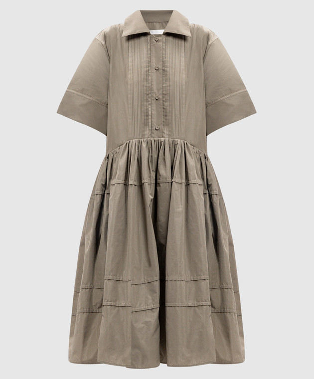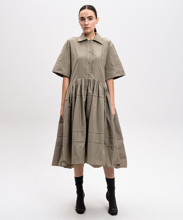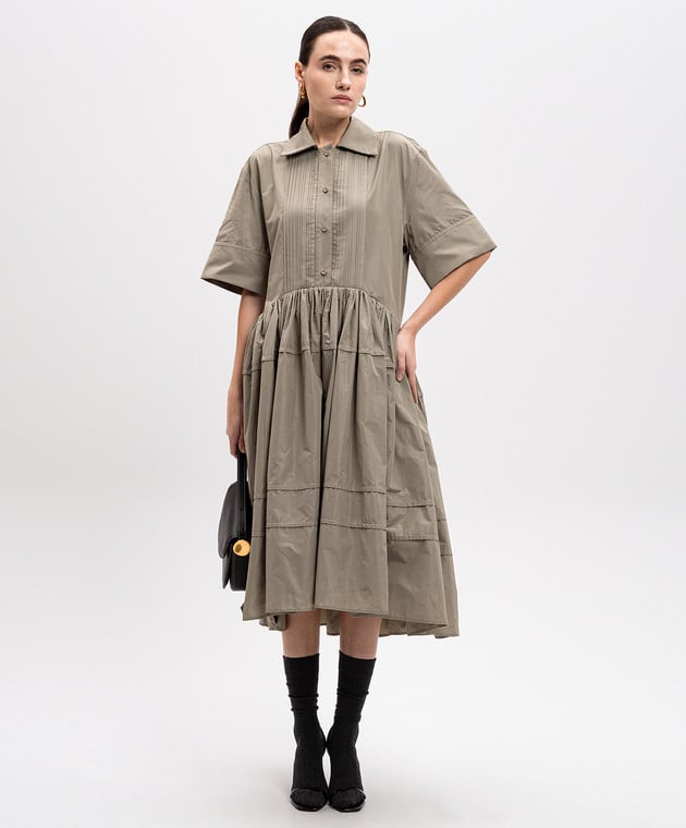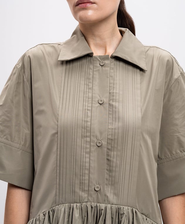 Зеленое платье-рубашка с оборками