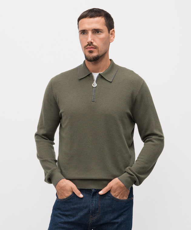 Зеленое поло из кашемира и шелка