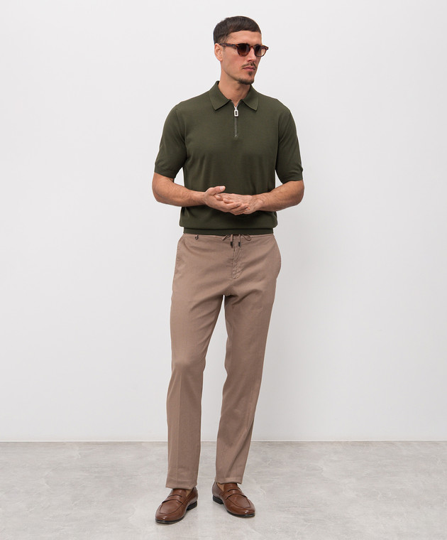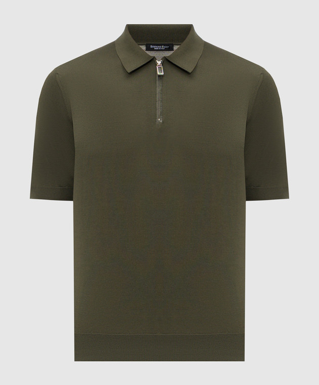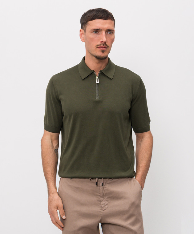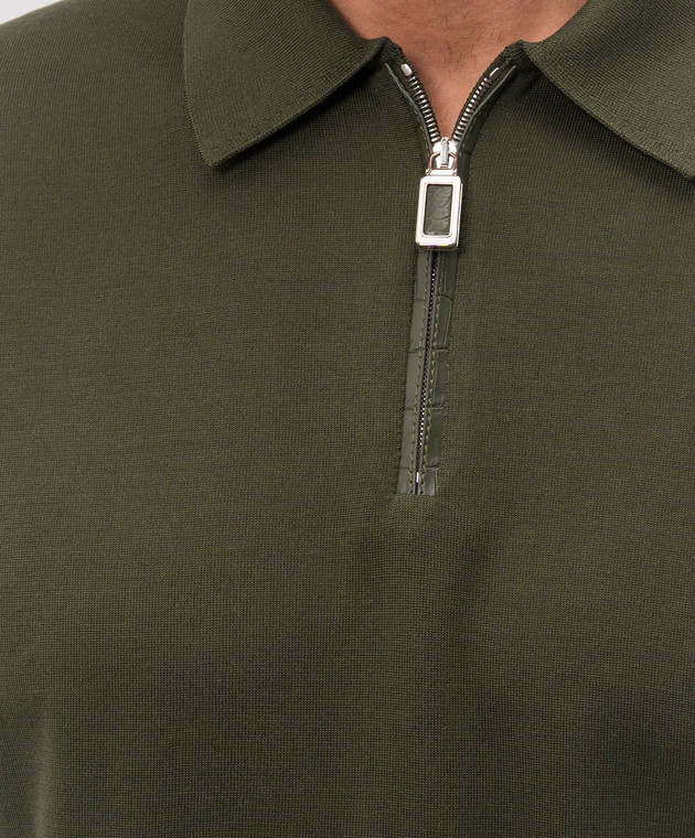 Зеленое поло из шелка с кожей крокодила