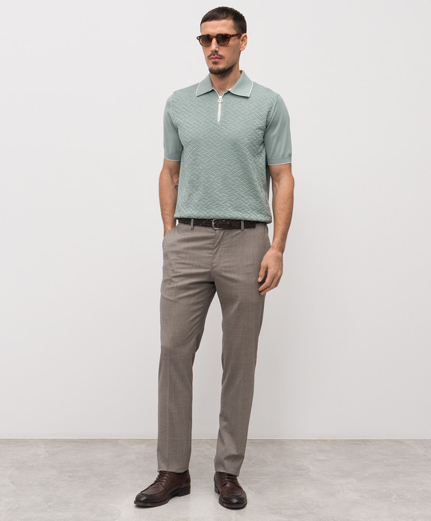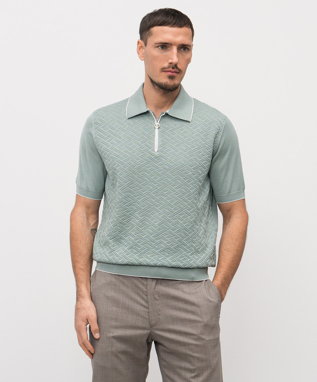 Зеленое поло из шелка в узор