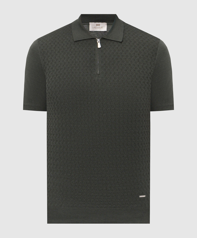 Зеленое поло с шелком с геометрическим узором