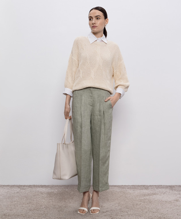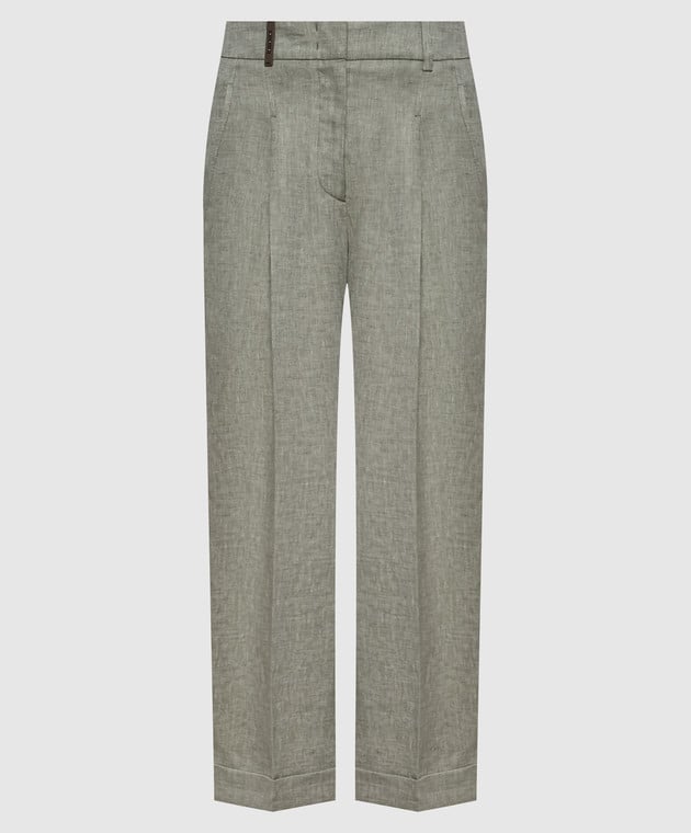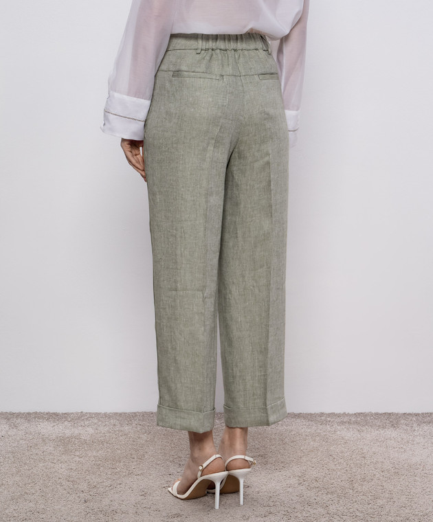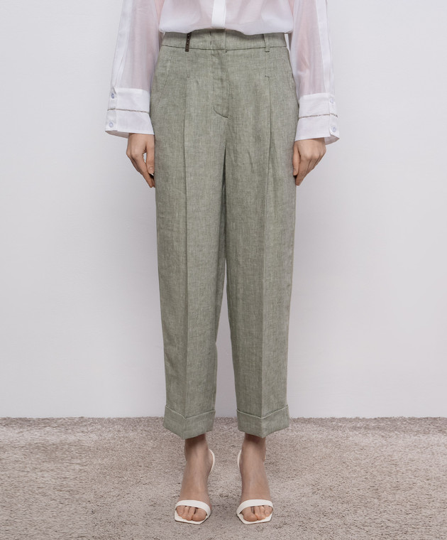Зеленые брюки из льна
