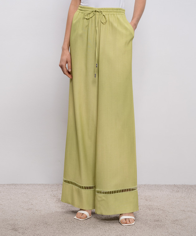 Зеленые брюки с ажурной вышивкой