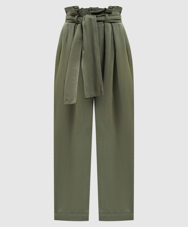 Зеленые брюки с льном