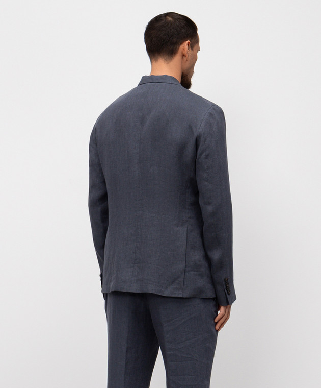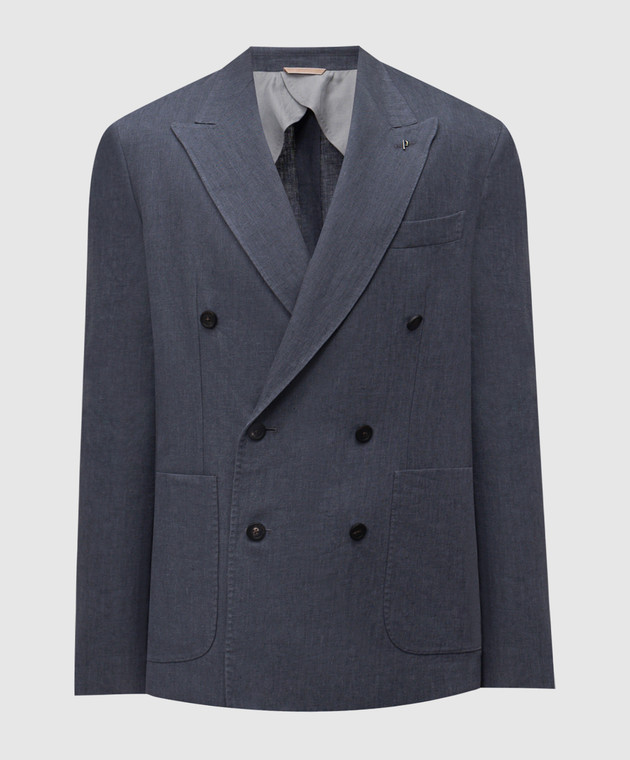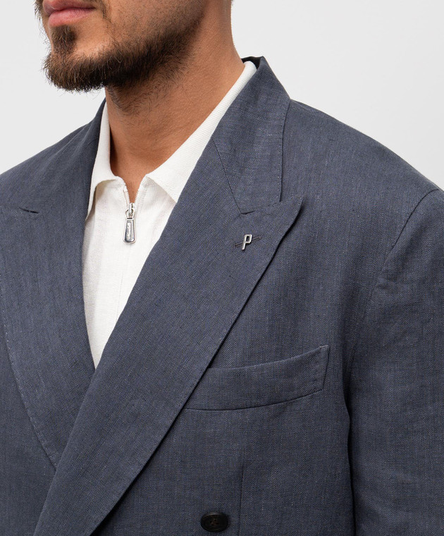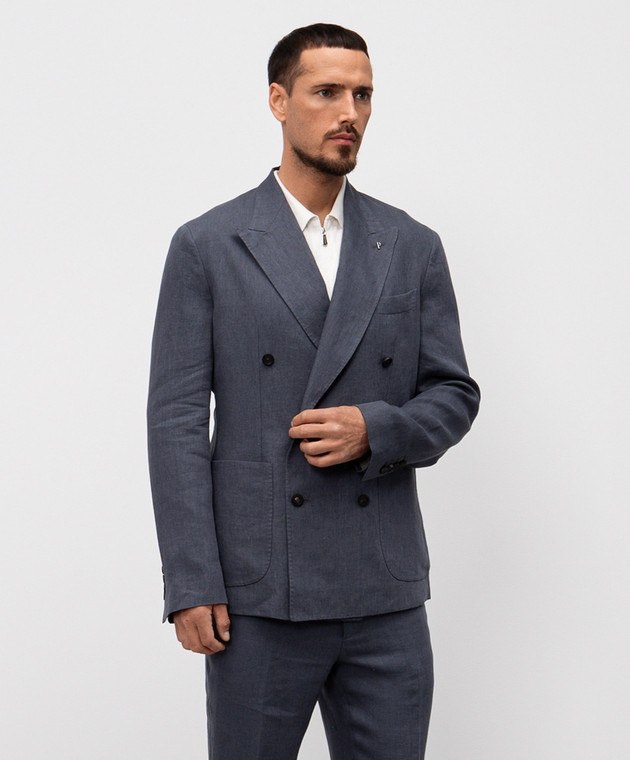 Серый двубортный пиджак из льна в узор