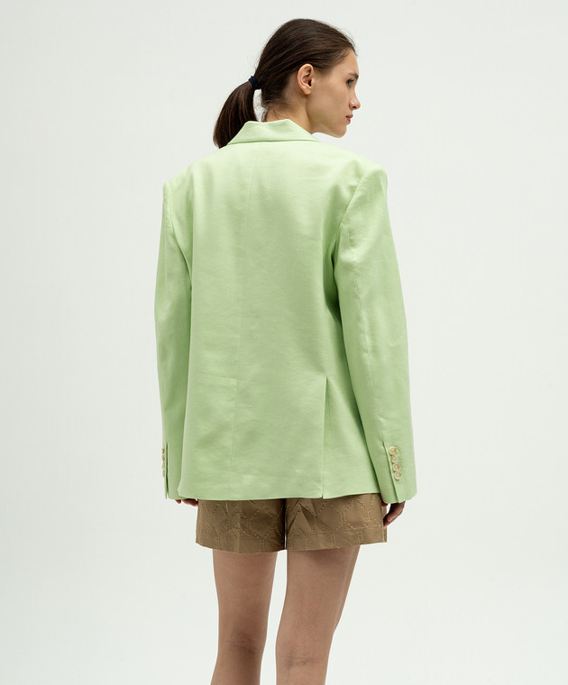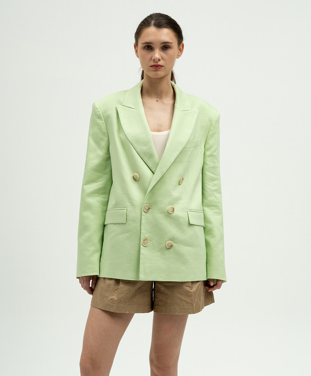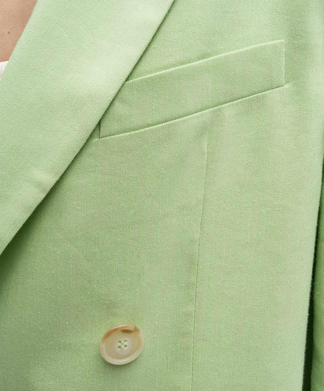 Зеленый двубортный жакет с льном