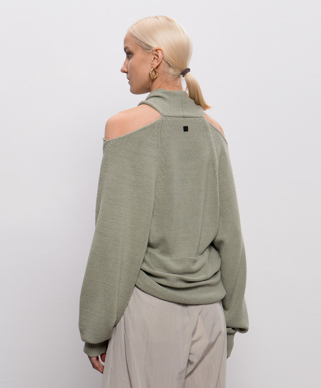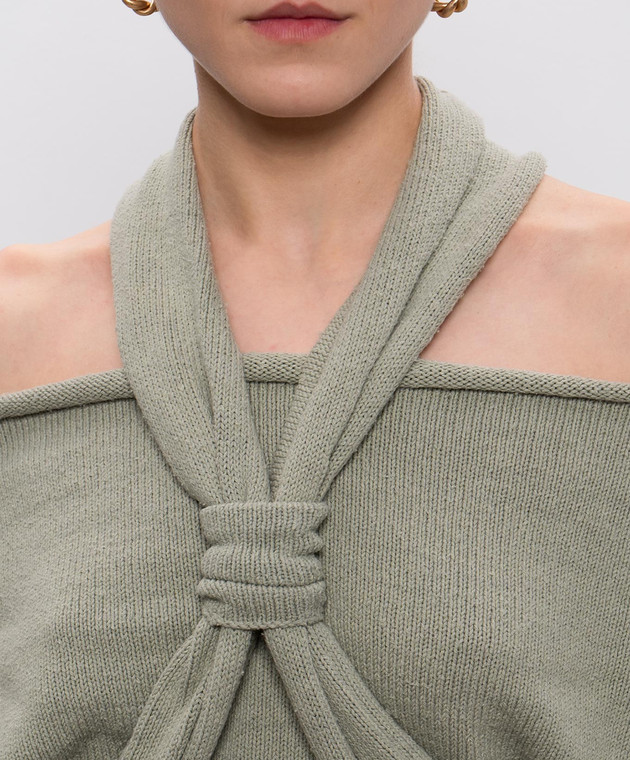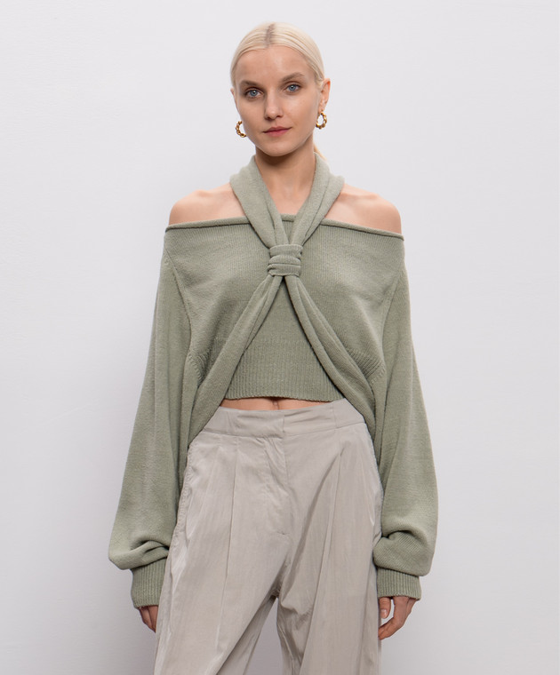 Зеленый джемпер из шелка с открытыми плечами