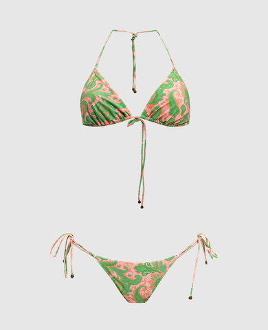 Зеленый купальник в принт