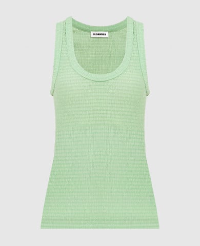 Зеленый топ с металлической брошью с гравировкой логотипа