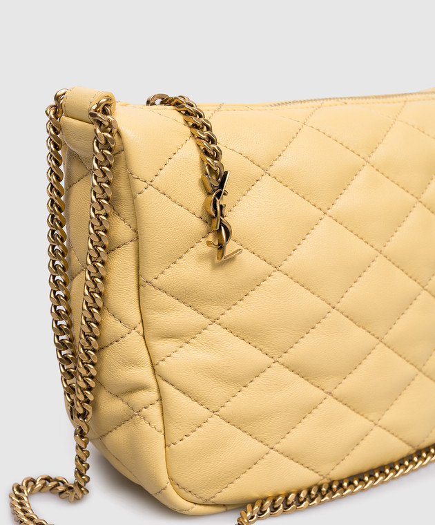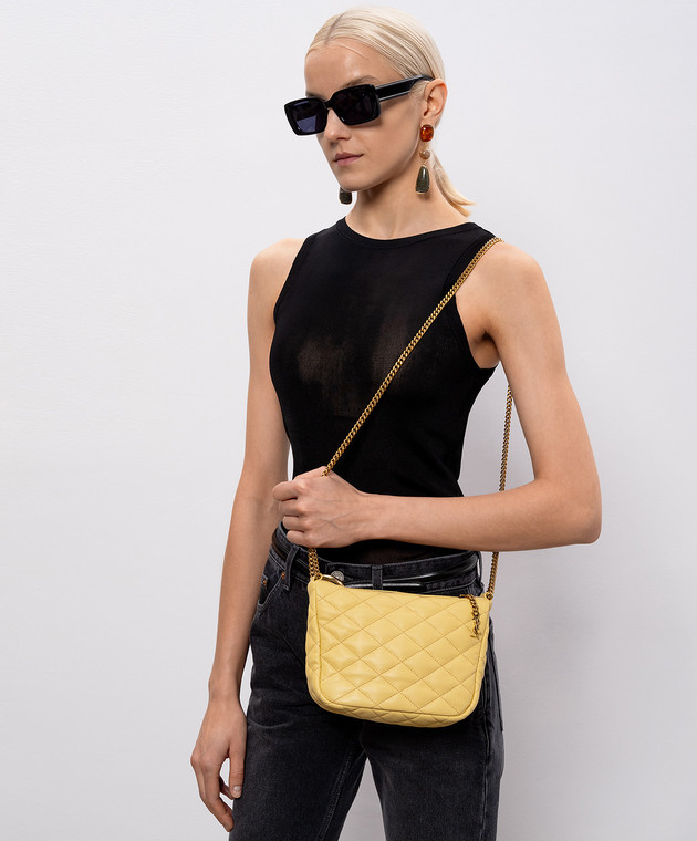 Желтая кожаная стеганная сумка
