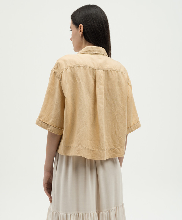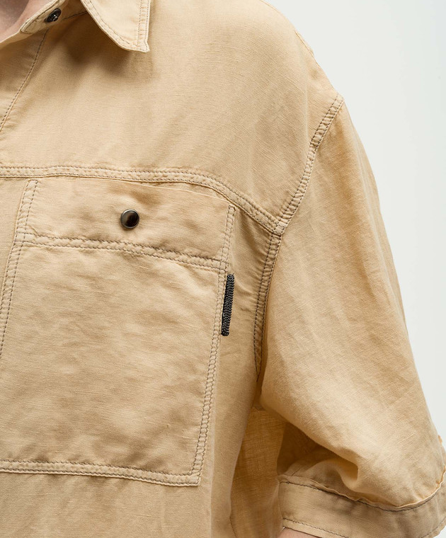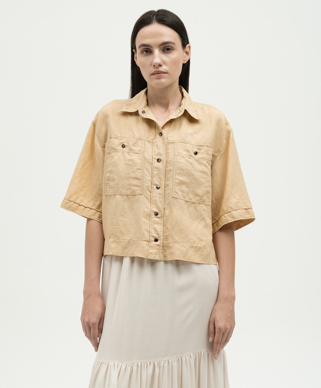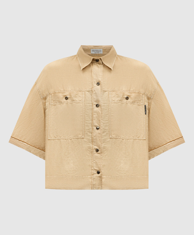 Бежевая укороченная рубашка с леном с цепочкой мониль
