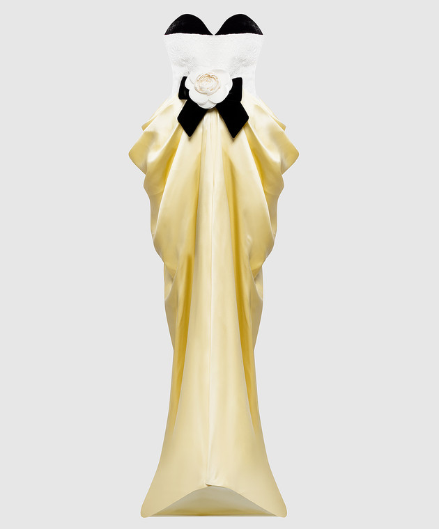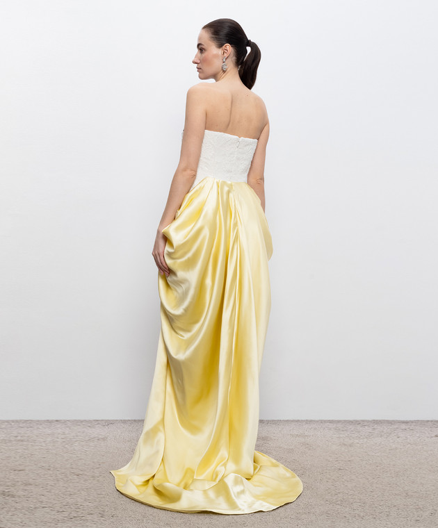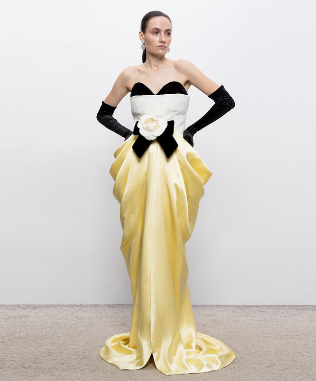 Желтое платье-бюстье с аппликацией