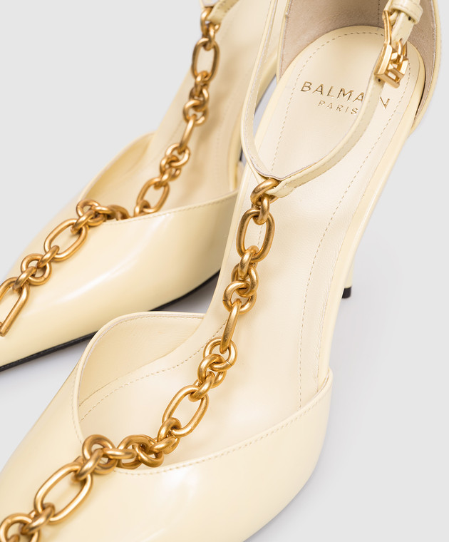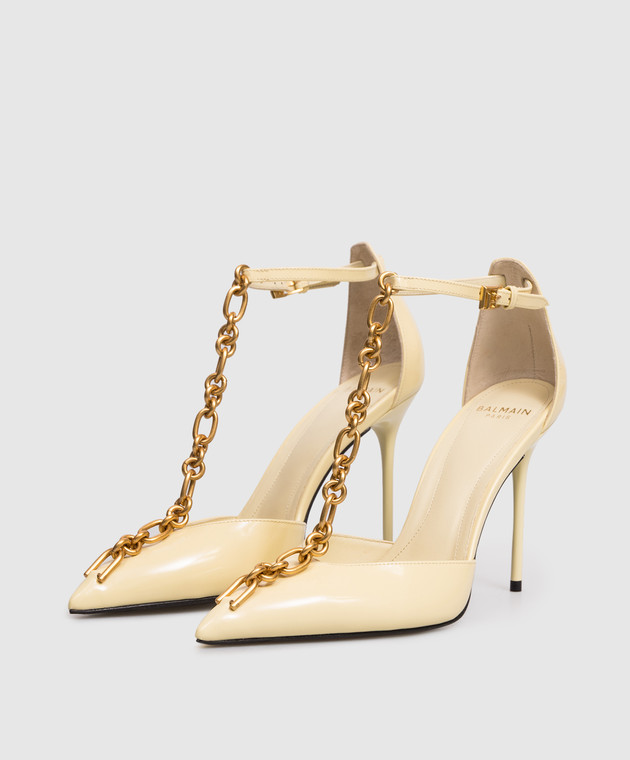 Желтые кожаные глянцевые туфли Sync с цепью