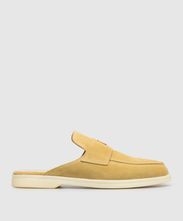 Желтые замшевые лоферы с гравировкой логотипа