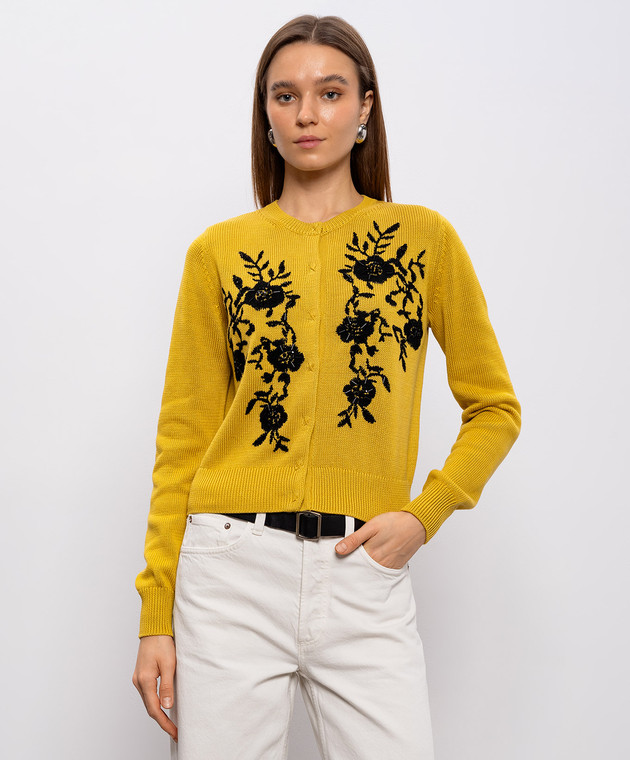 Желтый кардиган с вышивкой