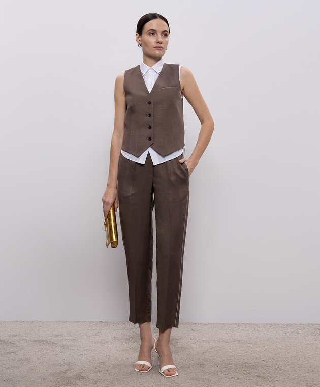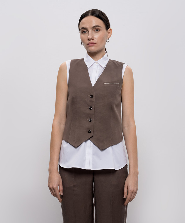 Коричневый жилет с льном