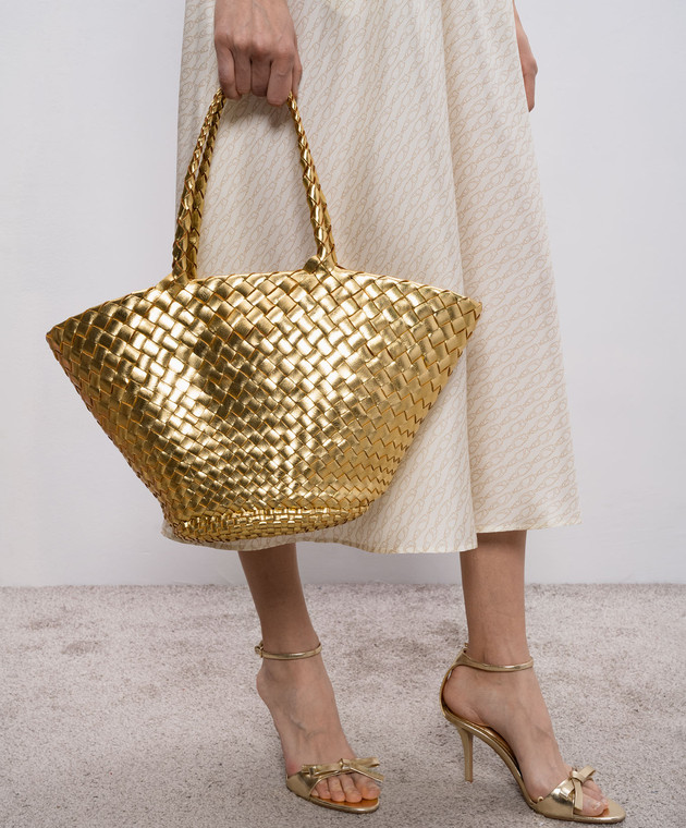 Золотистая кожаная плетеная сумка-тоут Egola