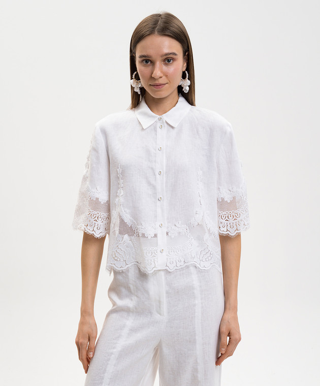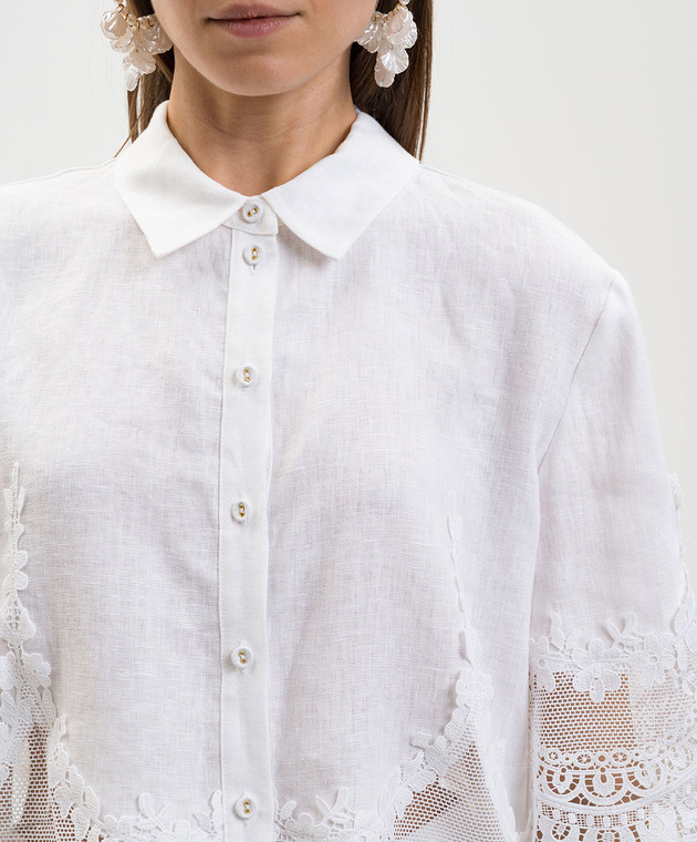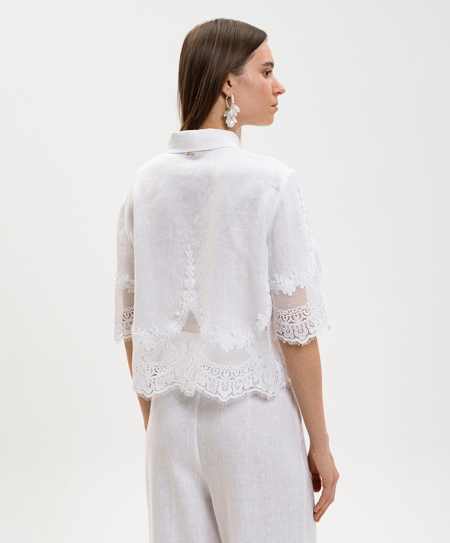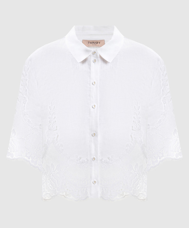 Біла блуза з льону з мереживом